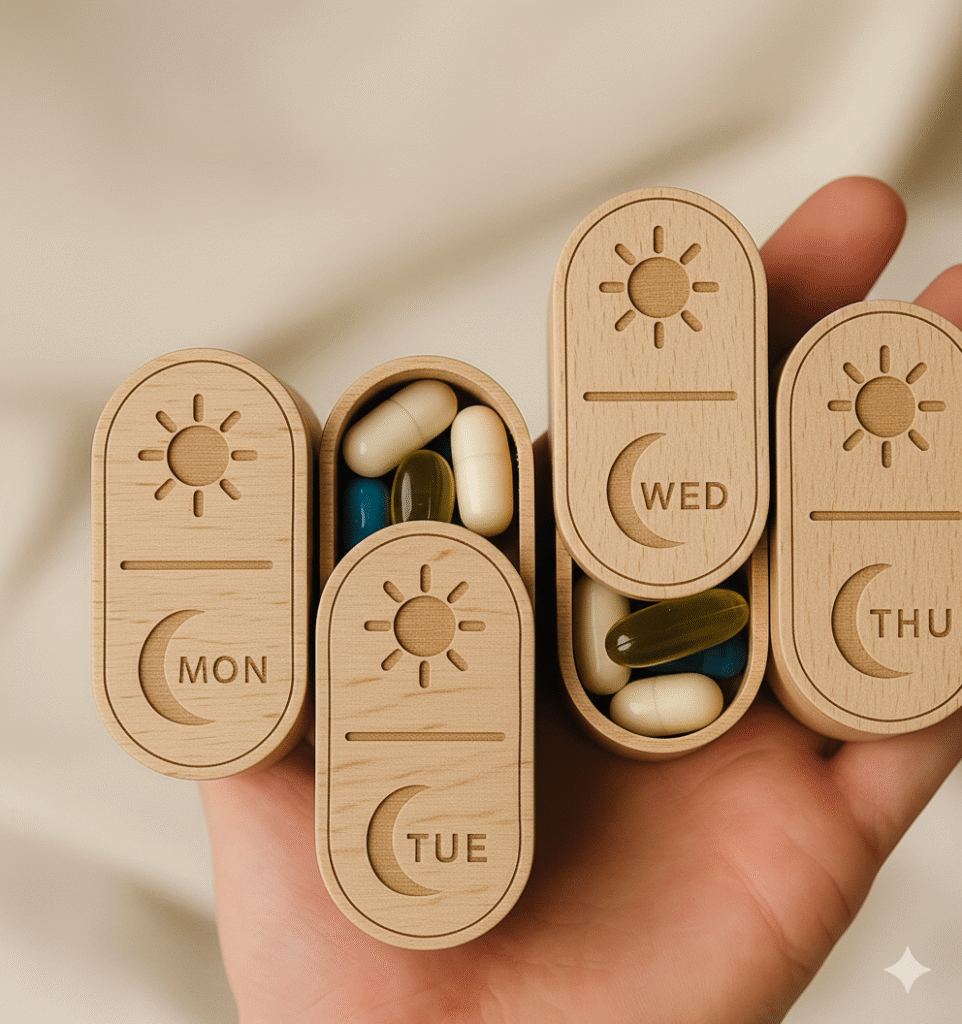 $7.95 – $29.99Price range: $7.95 through $29.99Wooden Pill Box Organizer: 3 Times a Day, 7 Day – Travel Friendly